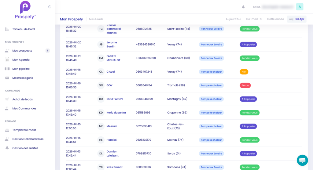 Les leads reçus sont générés le jours même via nos campagnes d’acquisition.