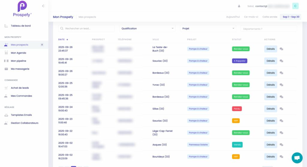 Nous ciblons vos leads en fonction de vos zones de chalandise (Région , département, ville).